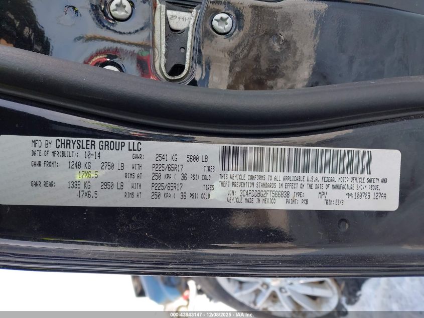 2015 DODGE JOURNEY - 3C4PDDBG2FT566838, цвет - Черный, 3.6, Бензин, Полный привод из США