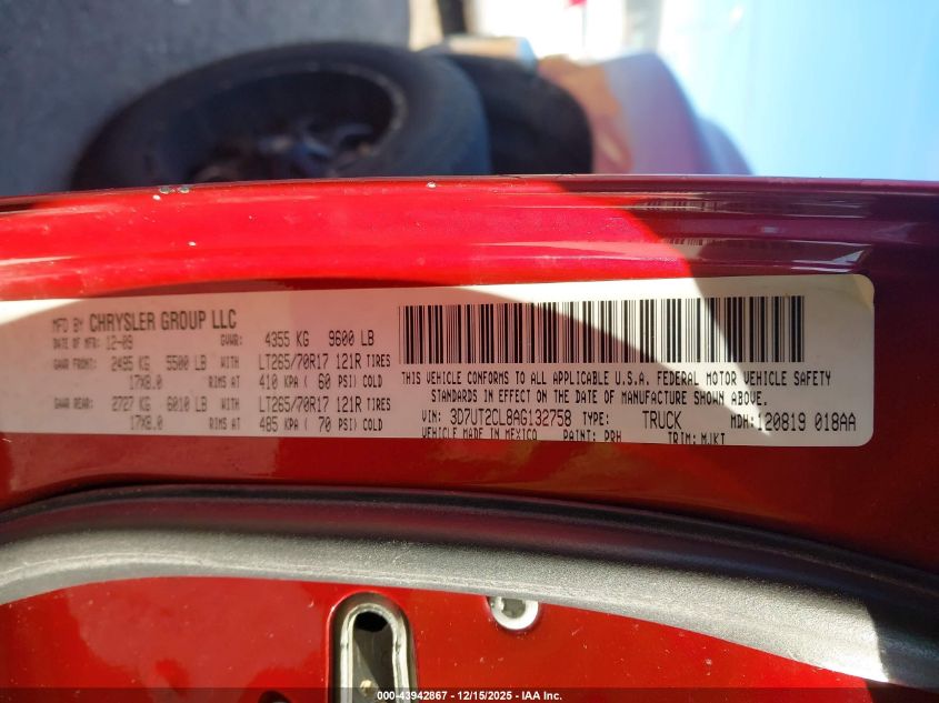 Цвет Цилиндры 6Привод Полный приводVIN 3D7UT2CL8AG132758Состояние НеизвестноПовреждения Обычный износ