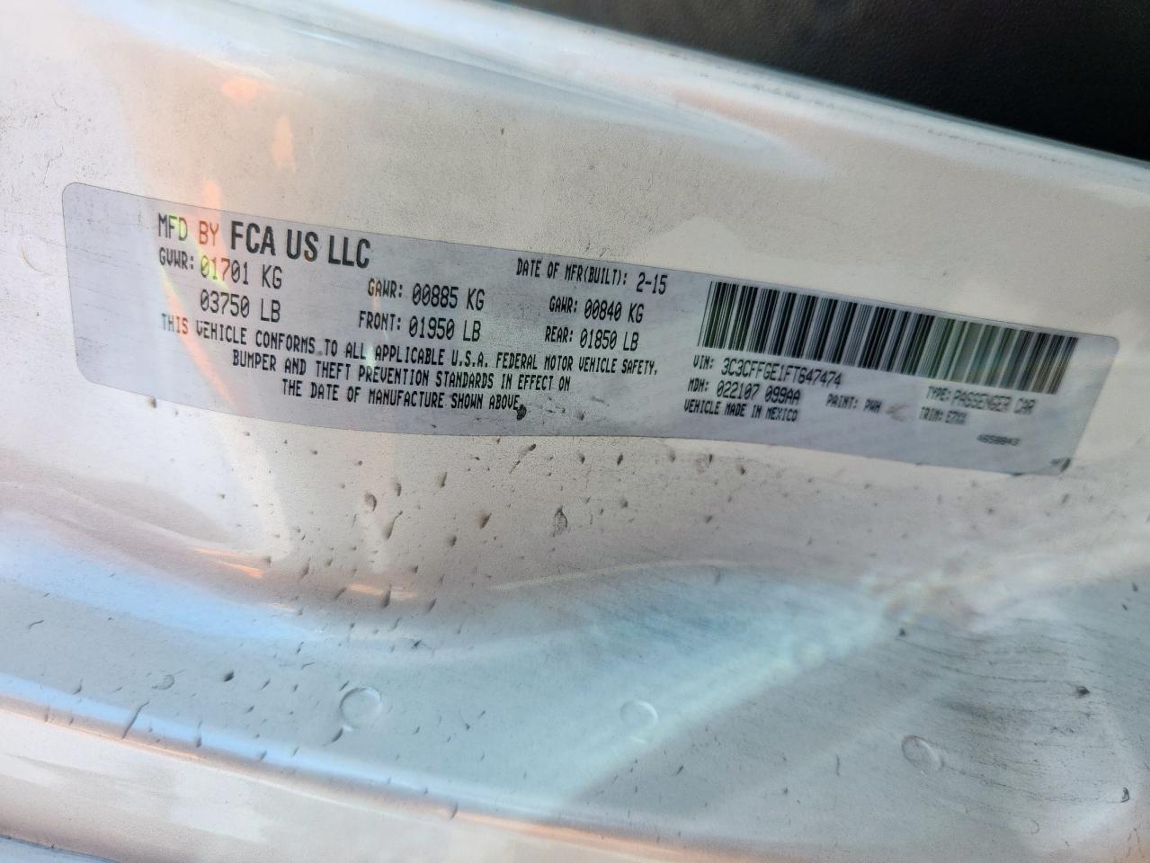 Цвет БелыйVIN 3C3CFFGE1FT647474Состояние Заводится и едет (проверено)Повреждения Передняя или задняяДата аукциона 2025-10-13