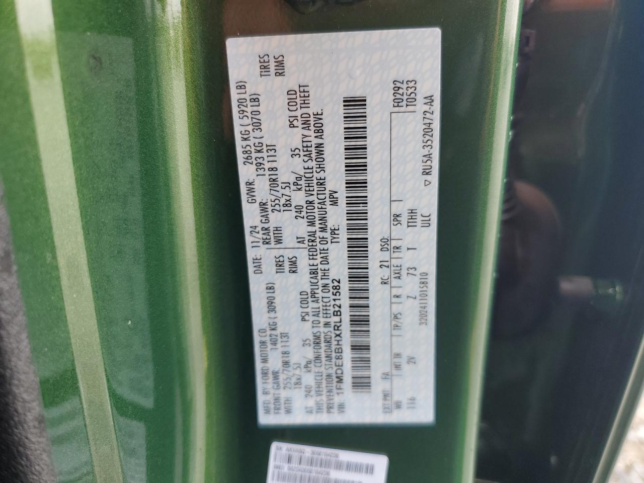 2024 FORD BRONCO - 1FMDE8BHXRLB21582, цвет - Зеленый, 2.3, Бензин, 4x4 с задним приводом из США