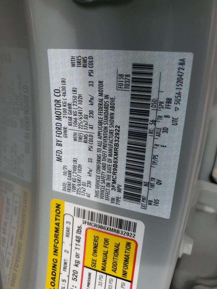 2021 FORD BRONCO SPORT - 3FMCR9B6XMRB32922, цвет - Серый, 1.5, Бензин, 4x4 с передним приводом из США