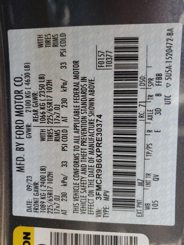 Цвет СерыйЦилиндры 3Привод 4x4 с передним приводомVIN 3FMCR9B6XPRE30374Состояние НеизвестноПовреждения Передняя или задняяДата аукциона 2025-10-09