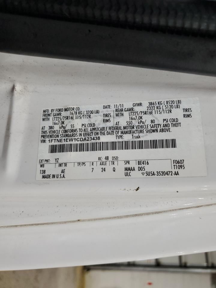2012 FORD ECONOLINE - 1FTNE1EW1CDA23438, цвет - Белый, 4.6, Бензин, Задний привод из США
