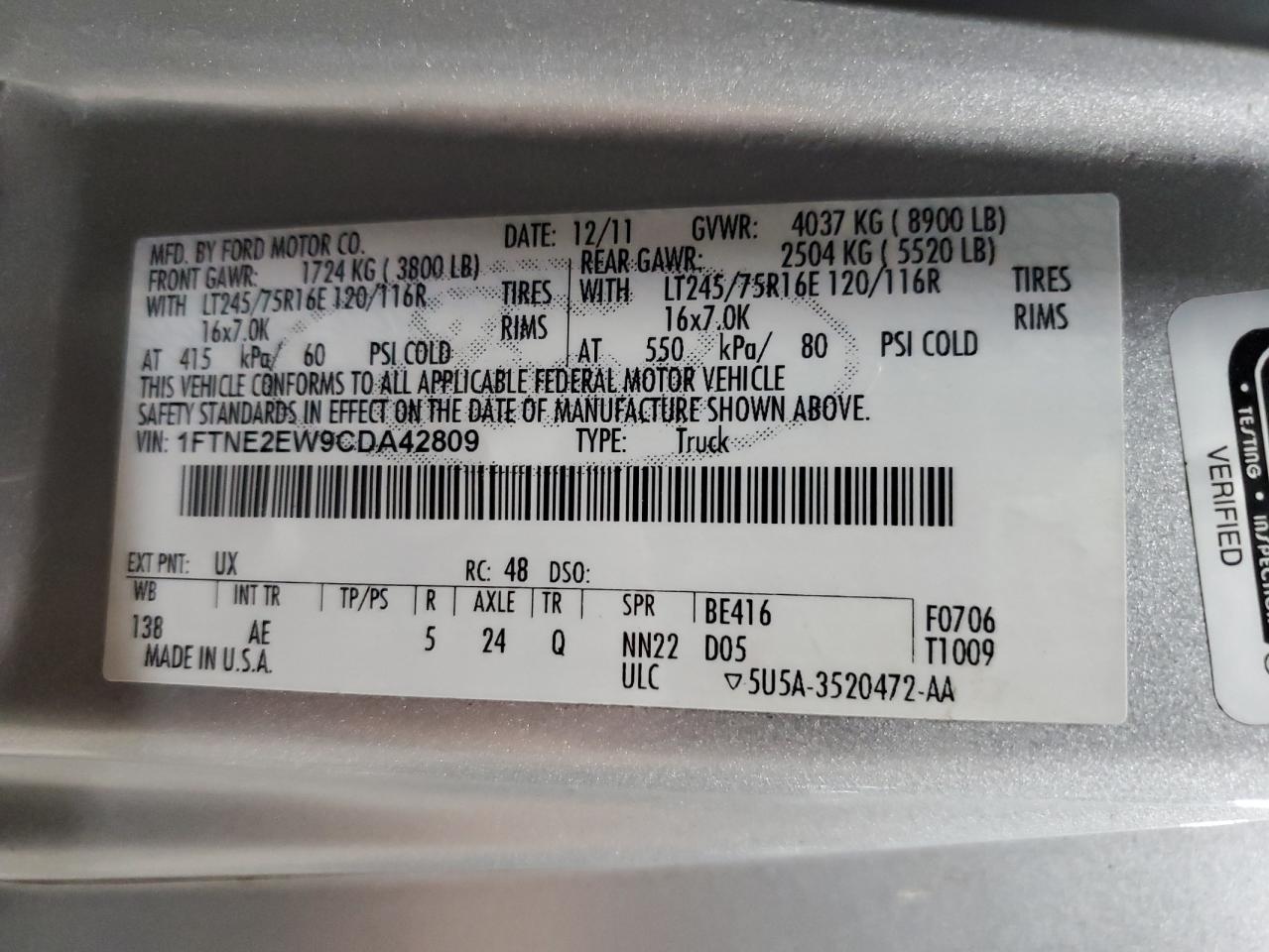 Цвет СеребряныйЦилиндры 8Привод Задний приводVIN 1FTNE2EW9CDA42809Состояние ЗаводитсяПовреждения Передняя или задняяДата аукциона 2025-10-08