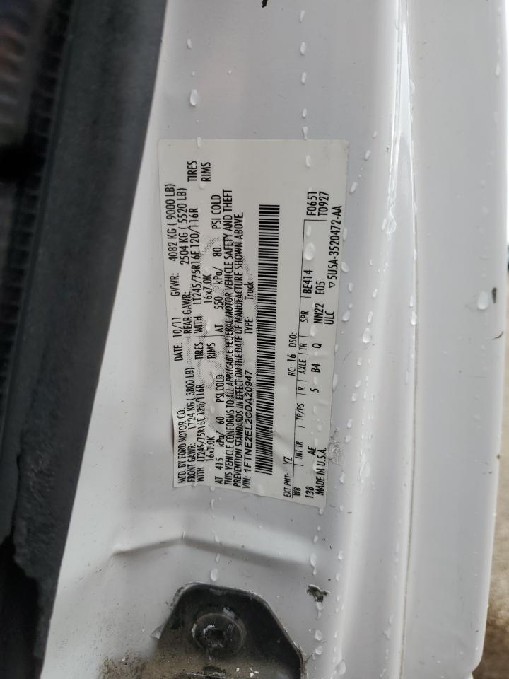 2012 FORD ECONOLINE - 1FTNE2EL2CDA20947, цвет - Белый, 5.4, Бензин, Задний привод из США