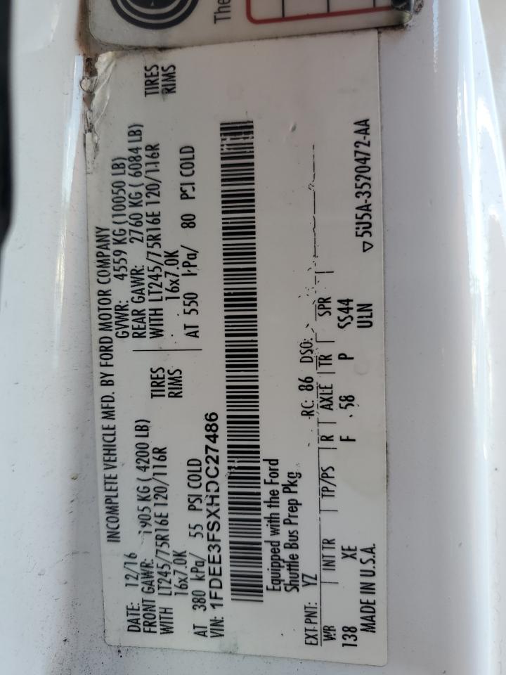 2017 FORD ECONOLINE - 1FDEE3FSXHDC27486, цвет - Белый, 6.8, Бензин, Задний привод из США