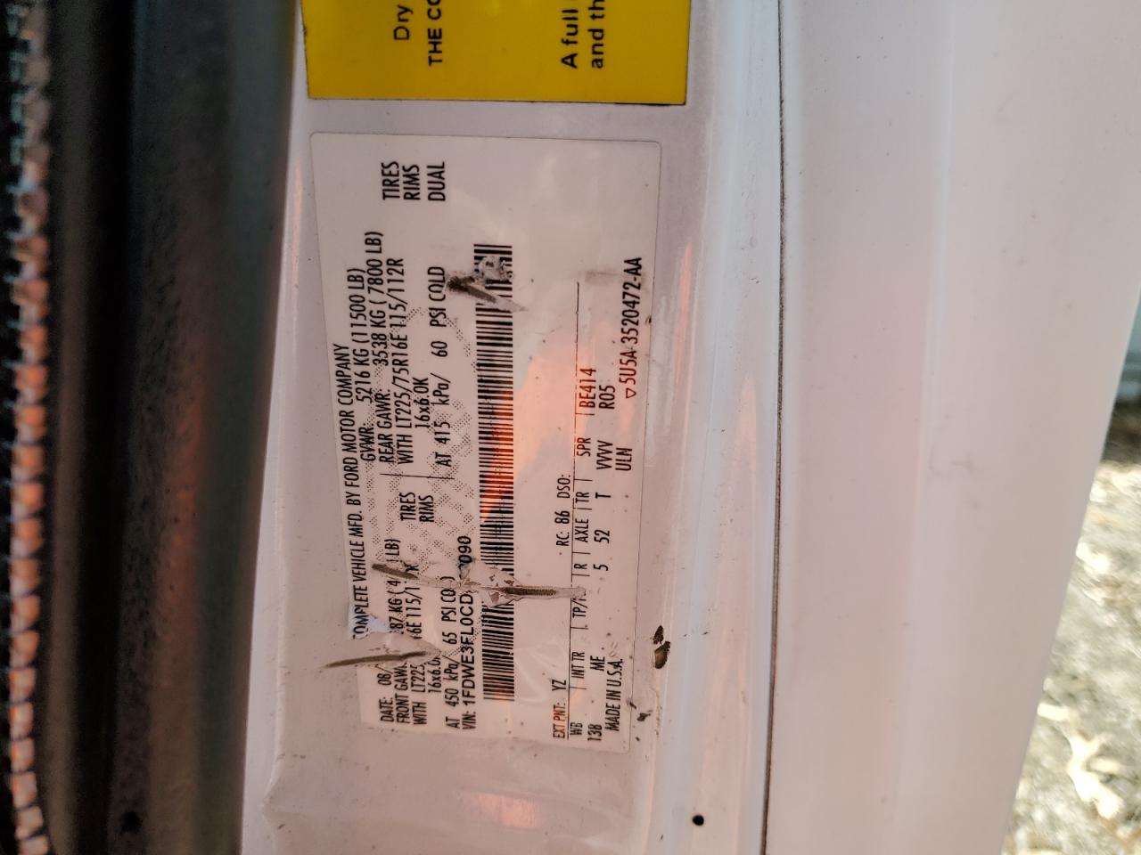 Цвет БелыйЦилиндры 8Привод Задний приводVIN 1FDWE3FL0CDA08090Состояние НеизвестноПовреждения Передняя или задняяДата аукциона 2025-10-13