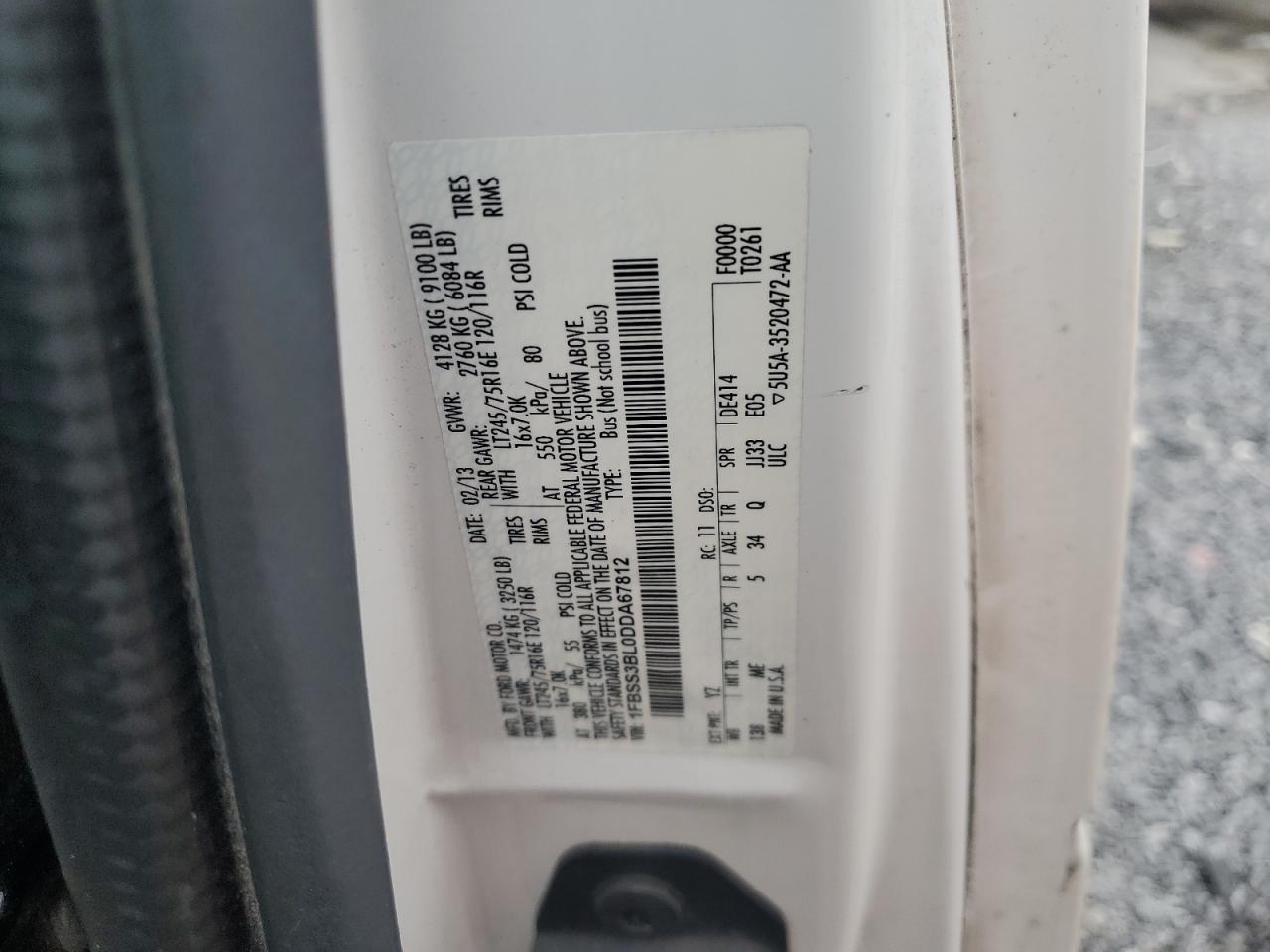 2013 FORD ECONOLINE - 1FBSS3BL0DDA67812, цвет - Белый, 5.4, Бензин, Задний привод из США