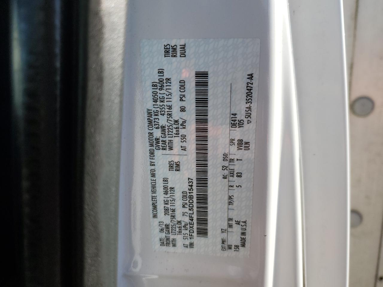 2013 FORD ECONOLINE - 1FDXE4FL5DDB15437, цвет - Белый, 5.4, Бензин, Задний привод из США