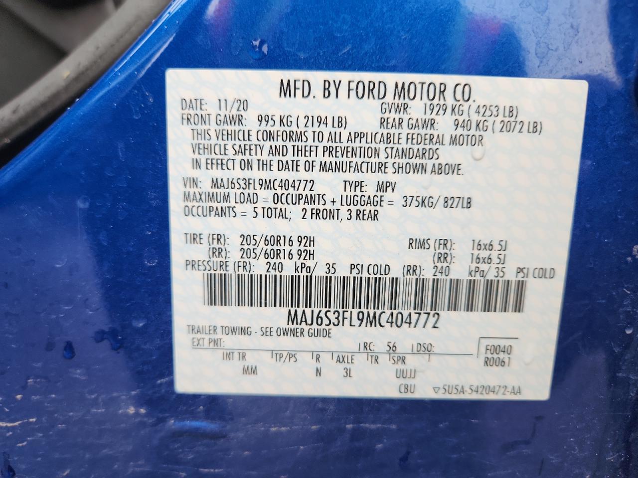 2021 FORD ECOSPORT - MAJ6S3FL9MC404772, цвет - Синий, 2.0, Бензин, 4x4 с передним приводом из США