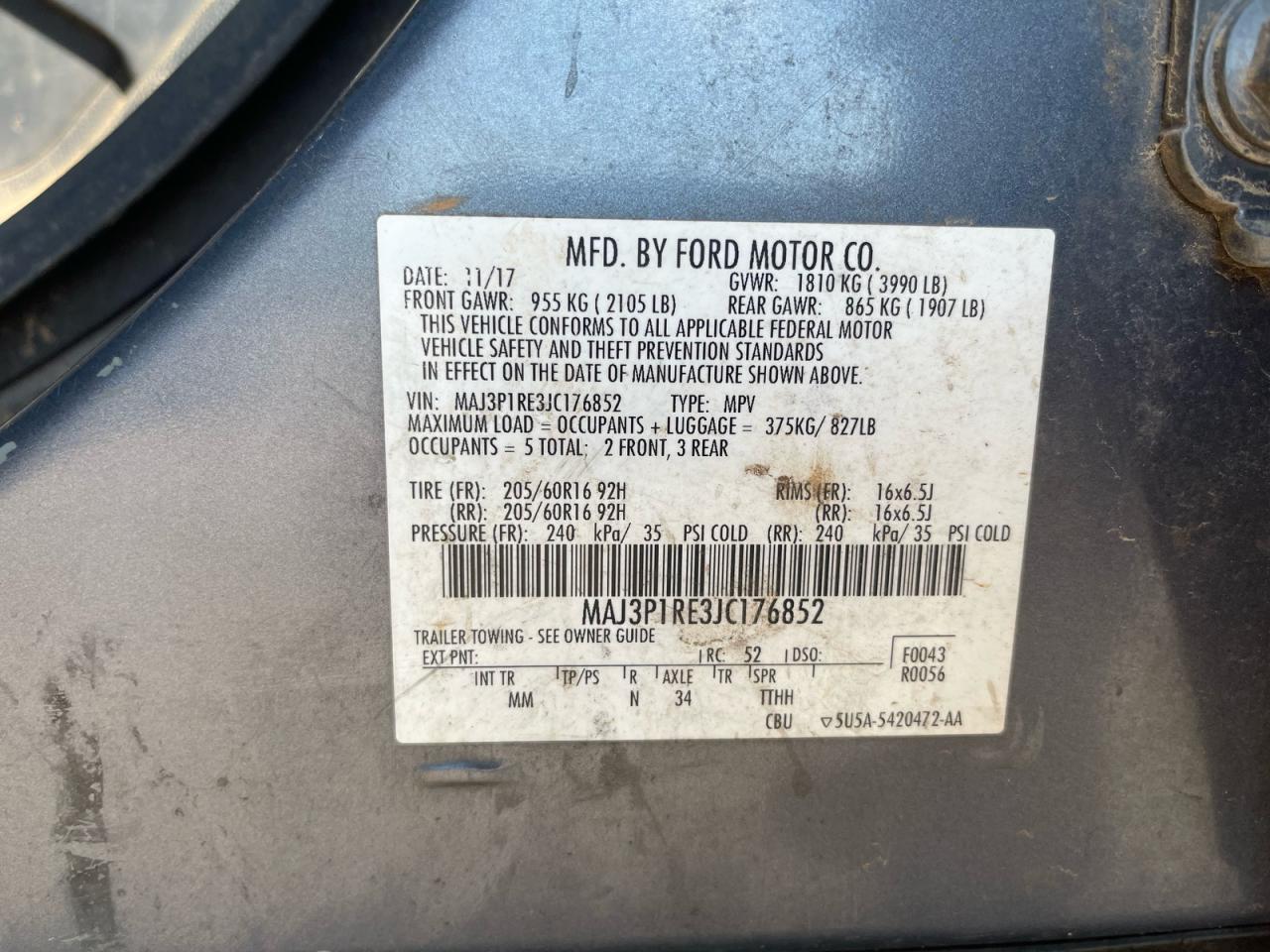 2018 FORD ECOSPORT - MAJ3P1RE3JC176852, цвет - Серый, 1.0, Бензин, из США