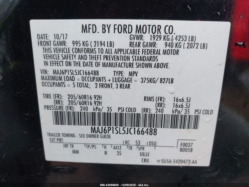 2018 FORD ECOSPORT - MAJ6P1SL5JC166488, цвет - Черный, 2.0, Бензин, Полный привод из США