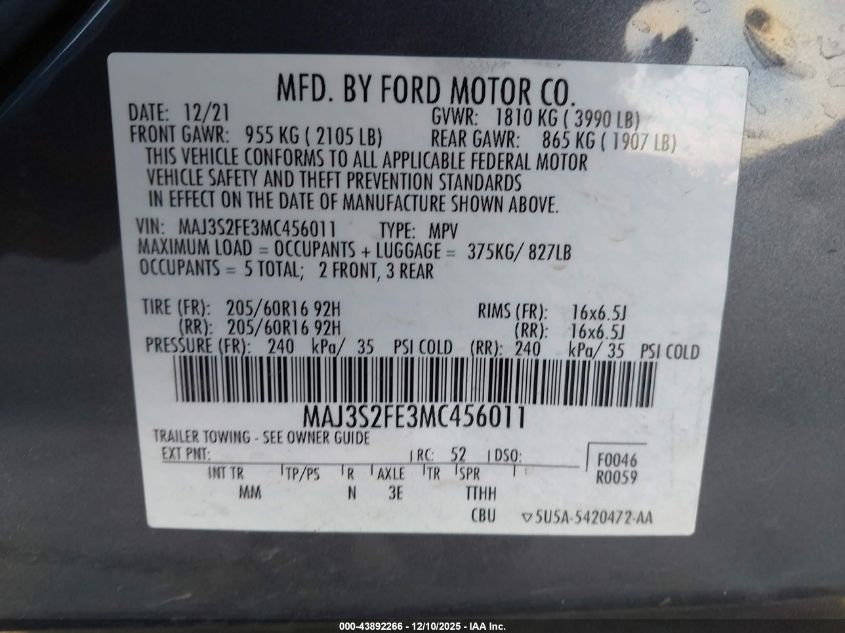 Цвет СерыйЦилиндры 3Привод Передний приводVIN MAJ3S2FE3MC456011Состояние Заводится и едет (проверено)Повреждения Передняя или задняя