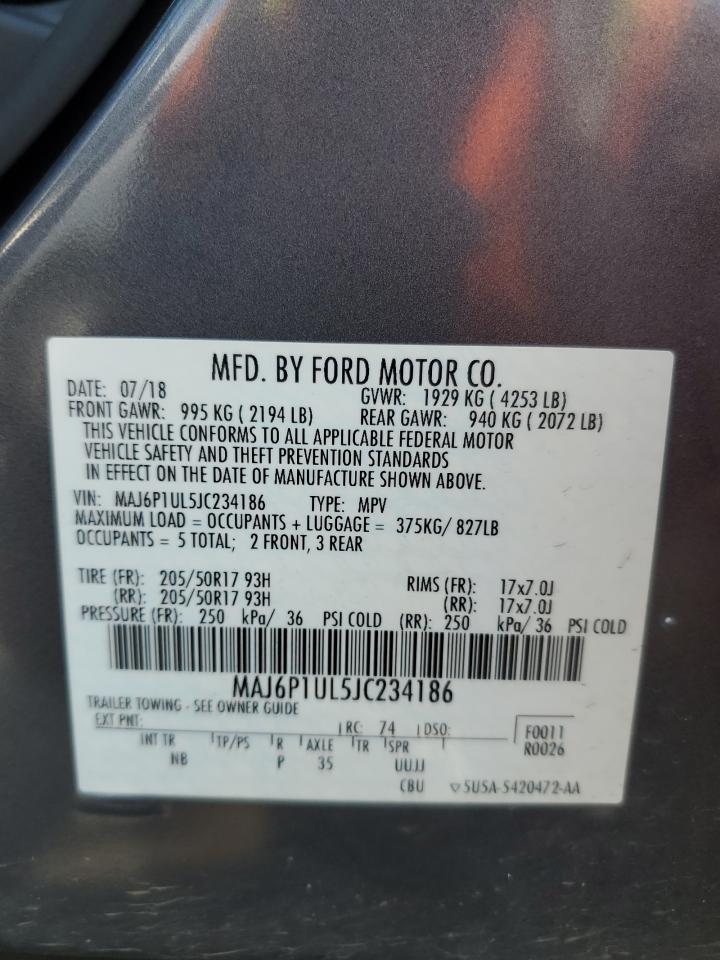 2018 FORD ECOSPORT - MAJ6P1UL5JC234186, цвет - Древесный уголь, 2.0, Бензин, 4x4 с передним приводом из США