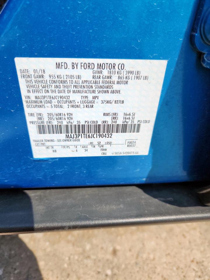 2018 FORD ECOSPORT - MAJ3P1TE6JC190432, цвет - Синий, 1.0, Бензин, из США