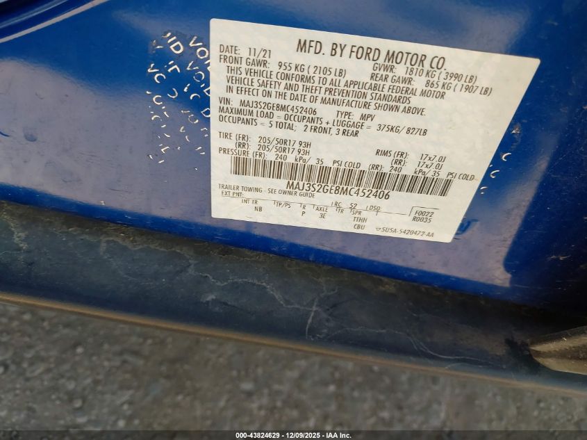 2021 FORD ECOSPORT - MAJ3S2GE8MC452406, цвет - Синий, 1.0, Бензин, Передний привод из США