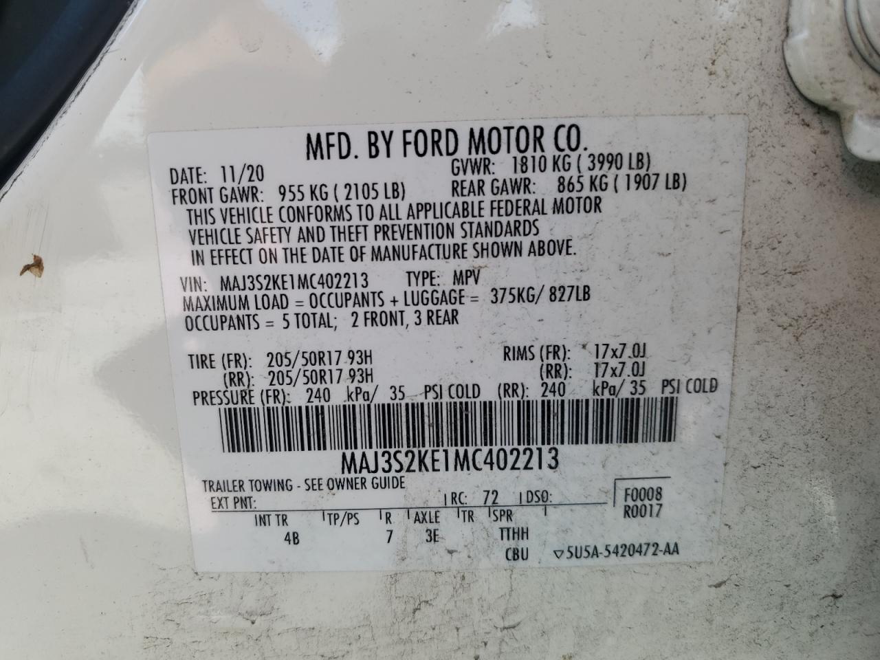 2021 FORD ECOSPORT - MAJ3S2KE1MC402213, цвет - Белый, 1.0, Бензин, из США