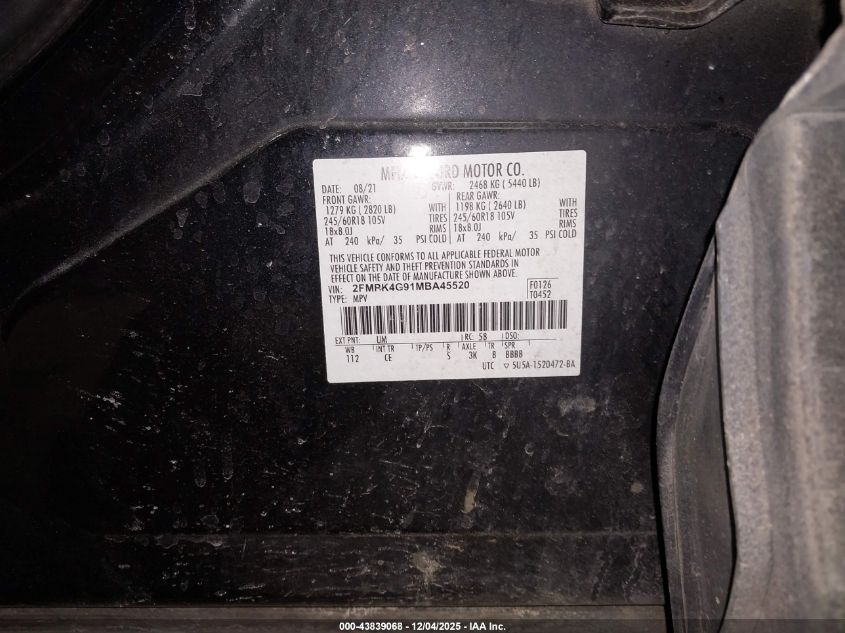 2021 FORD EDGE - 2FMPK4G91MBA45520, цвет - Черный, 2.0, Бензин, Полный привод из США