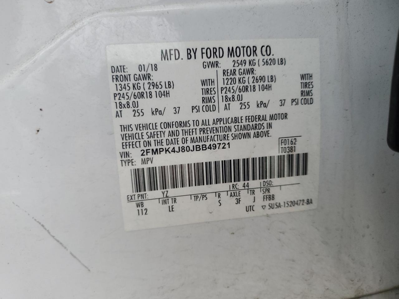 Цвет БелыйЦилиндры 6Привод Полный приводVIN 2FMPK4J80JBB49721Состояние Заводится и едет (проверено)Повреждения Передняя или задняя