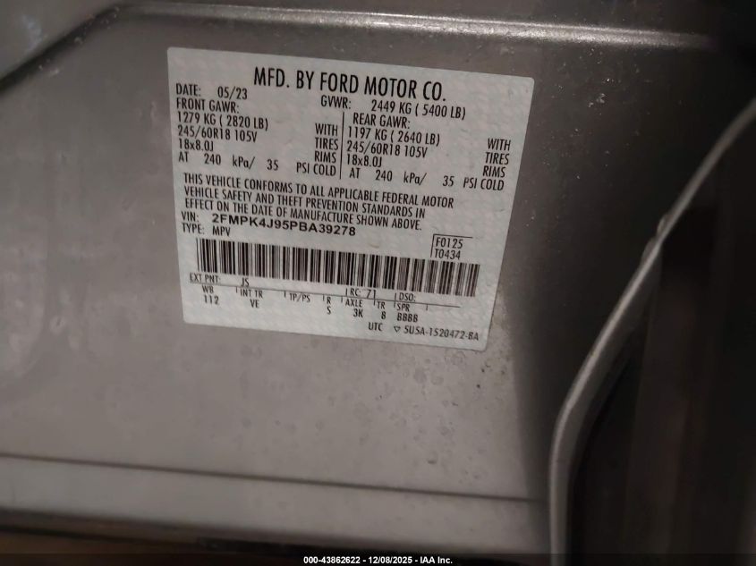 2023 FORD EDGE - 2FMPK4J95PBA39278, цвет - Серебряный, 2.0, Бензин, Полный привод из США