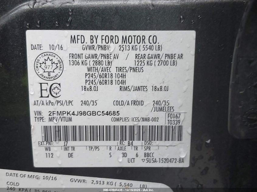 Цвет СерыйЦилиндры 4Привод Полный приводVIN 2FMPK4J98GBC54685Состояние НеизвестноПовреждения Обычный износ