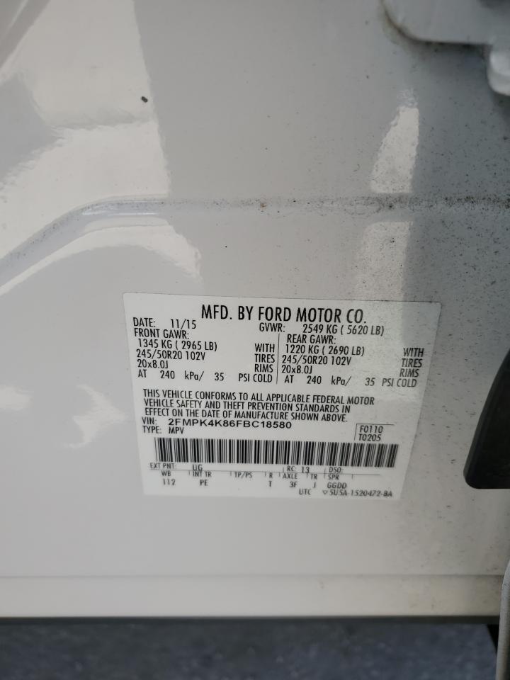 2015 FORD EDGE - 2FMPK4K86FBC18580, цвет - Белый, 3.5, Бензин, Полный привод из США