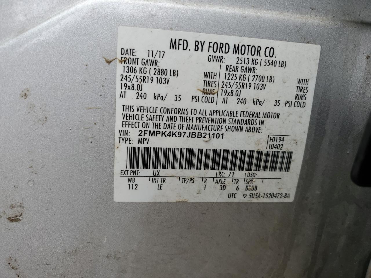 2018 FORD EDGE - 2FMPK4K97JBB21101, цвет - Серебряный, 2.0, Бензин, Полный привод из США