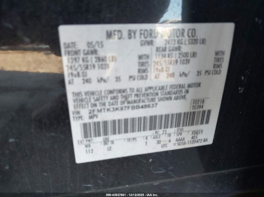 2015 FORD EDGE - 2FMTK3K97FBB48637, цвет - Черный, 2.0, Бензин, Передний привод из США