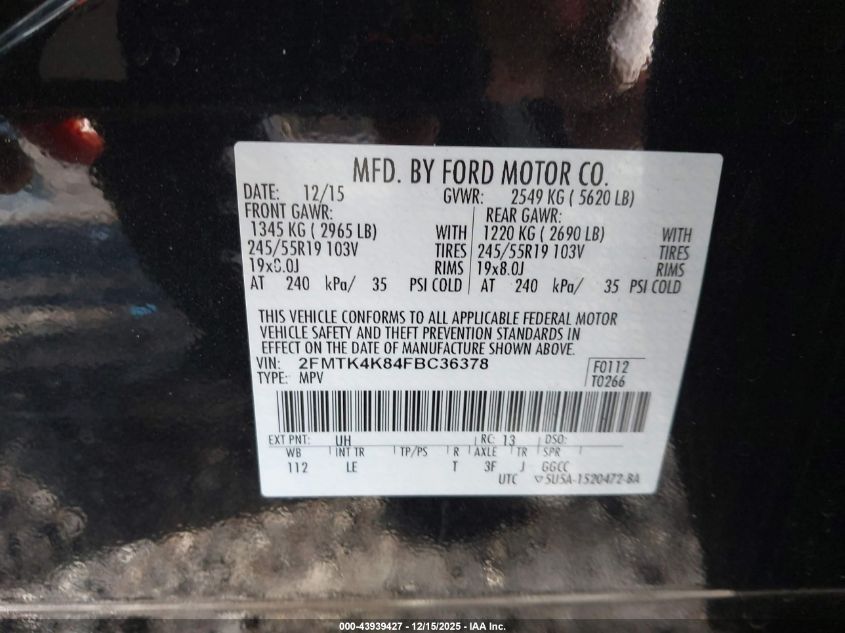2015 FORD EDGE - 2FMTK4K84FBC36378, цвет - Черный, 3.5, Бензин, Полный привод из США