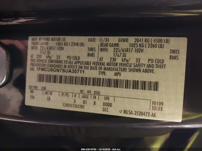2025 FORD ESCAPE - 1FMCU9GN7SUA30711, цвет - Черный, 1.5, Бензин, Полный привод из США