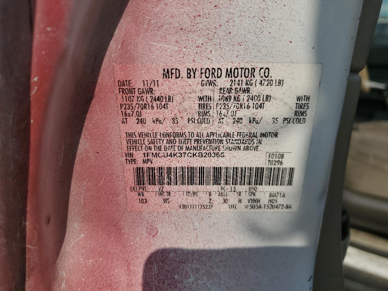 Цвет БургундияЦилиндры 4VIN 1FMCU4K37CKB20365Состояние Заводится и едет (проверено)Повреждения Передняя или задняя