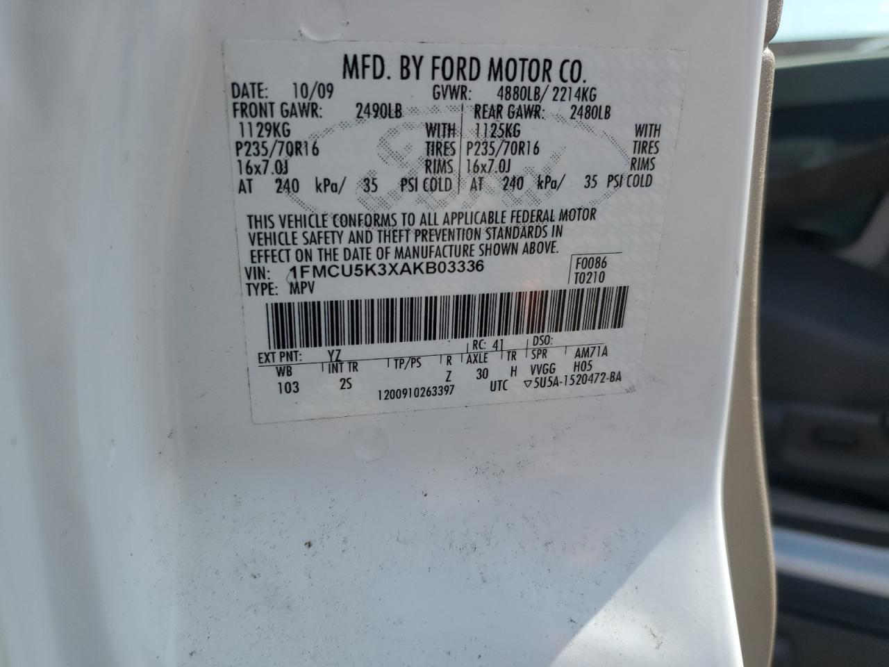 Цвет БелыйЦилиндры 4Привод Полный приводVIN 1FMCU5K3XAKB03336Состояние Заводится и едет (проверено)Повреждения Передняя или задняя