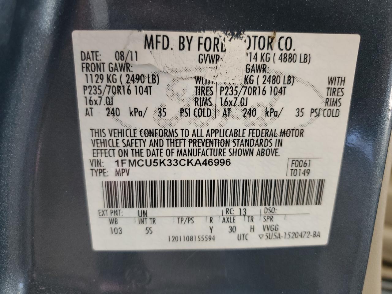 Цвет СинийЦилиндры 4Привод Полный приводVIN 1FMCU5K33CKA46996Состояние НеизвестноПовреждения По всему автоДата аукциона 2025-10-08