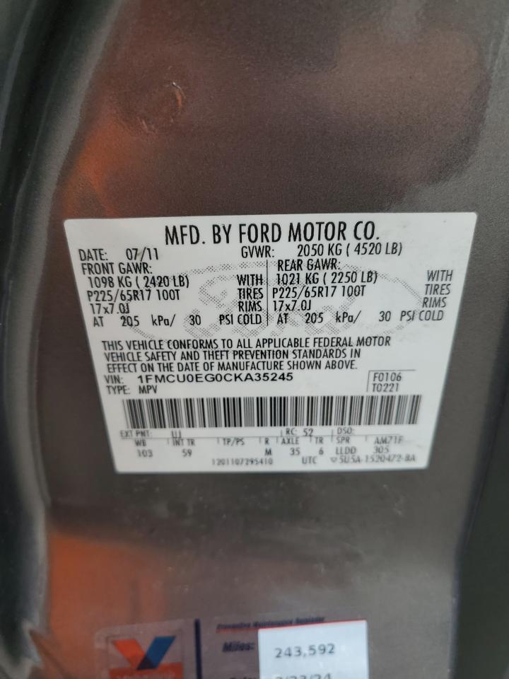 2012 FORD ESCAPE - 1FMCU0EG0CKA35245, цвет - Серый, 3.0, Бензин, из США