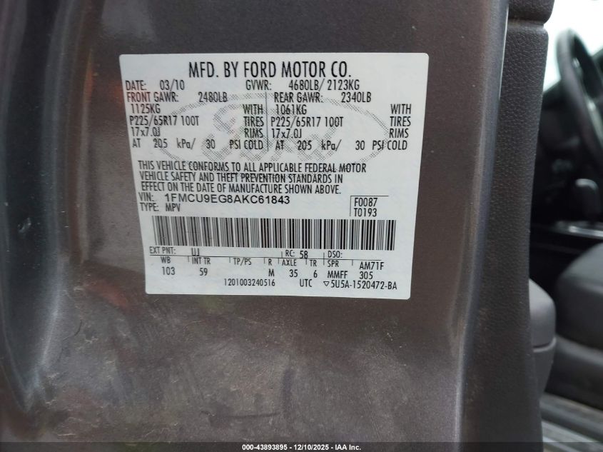 Цвет СерыйЦилиндры 6Привод Полный приводVIN 1FMCU9EG8AKC61843Состояние Заводится и едет (проверено)Повреждения Передняя правая