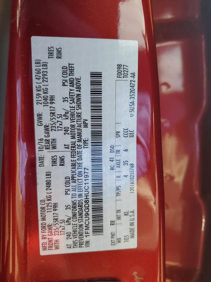 2017 FORD ESCAPE - 1FMCU9GD8HUC11977, цвет - Красный, 1.5, Бензин, 4x4 с передним приводом из США