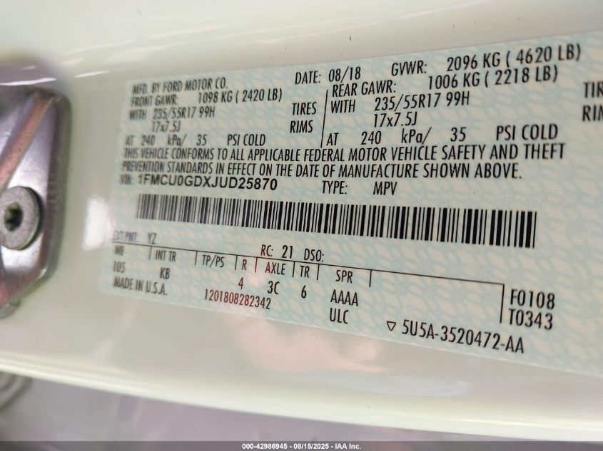 2018 FORD ESCAPE S