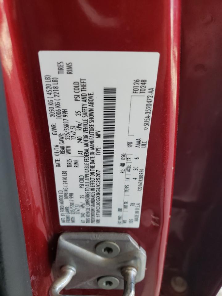 2016 FORD ESCAPE - 1FMCU0GX8GUC25267, цвет - Красный, 1.6, Бензин, из США