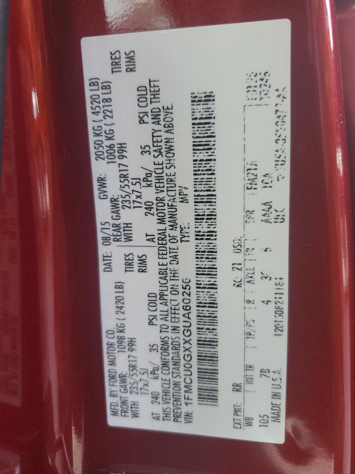 2016 FORD ESCAPE - 1FMCU0GXXGUA60256, цвет - Бордовый, 1.6, Бензин, из США