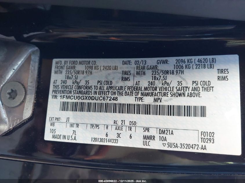 2013 FORD ESCAPE - 1FMCU0GX0DUC67248, цвет - Фиолетовый, 1.6, Бензин, Передний привод из США