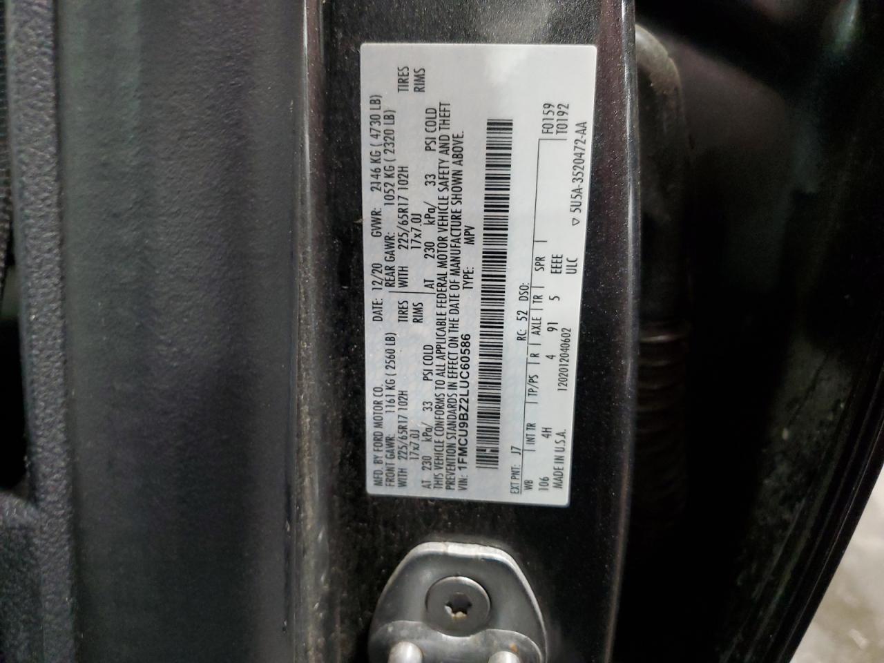 Цвет СерыйЦилиндры 4Привод 4x4 с передним приводомVIN 1FMCU9BZ2LUC60586Состояние НеизвестноПовреждения Передняя или задняя