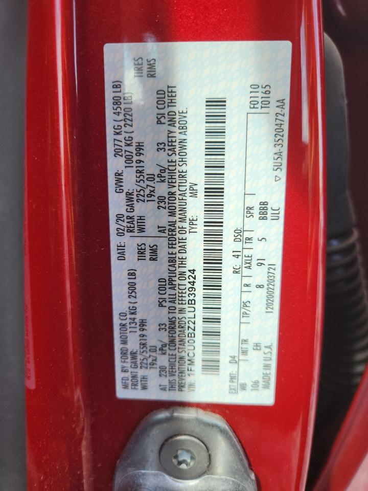 2020 FORD ESCAPE - 1FMCU0BZ2LUB39424, цвет - Красный, 2.5, Гибрид, из США