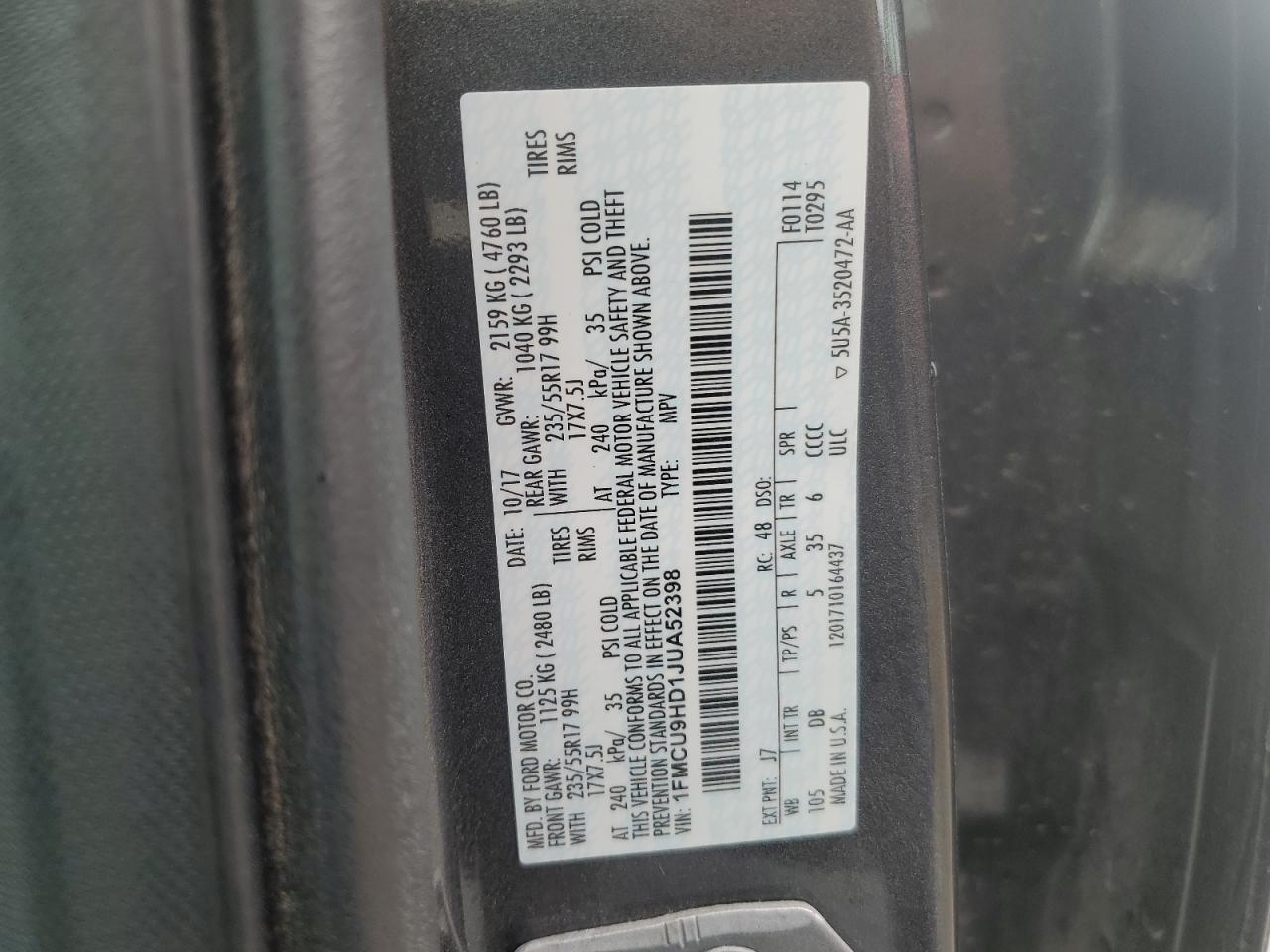 2018 FORD ESCAPE - 1FMCU9HD1JUA52398, цвет - Серый, 1.5, Бензин, 4x4 с передним приводом из США