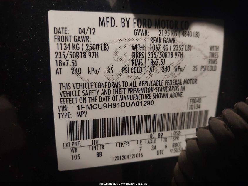 Цвет ЧерныйЦилиндры 4Привод Полный приводVIN 1FMCU9H91DUA01290Состояние СтационарноПовреждения Передняя или задняя