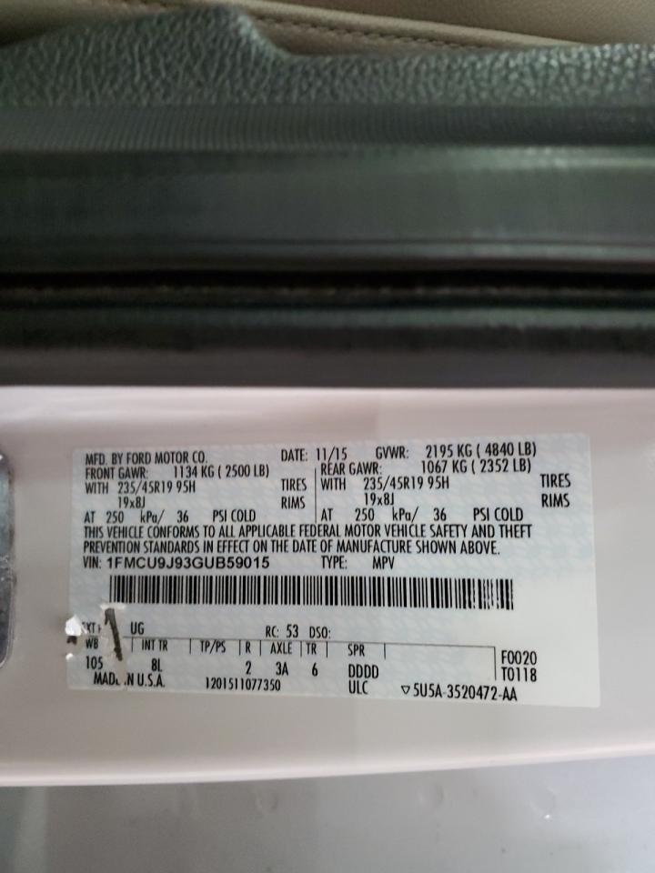 2016 FORD ESCAPE - 1FMCU9J93GUB59015, цвет - Белый, 2.0, Бензин, 4x4 с передним приводом из США