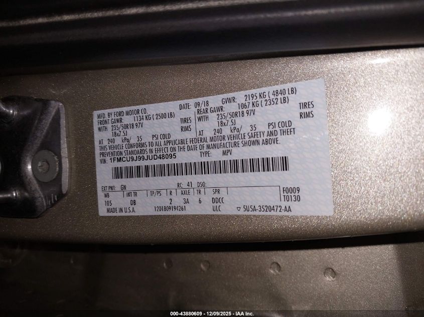 2018 FORD ESCAPE - 1FMCU9J99JUD48095, цвет - Бежевый, 2.0, Бензин, Полный привод из США