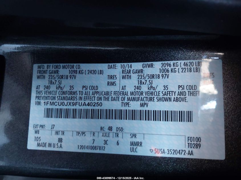Цвет ЧерныйЦилиндры 4Привод Передний приводVIN 1FMCU0JX9FUA40250Состояние СтационарноПовреждения Передняя или задняя