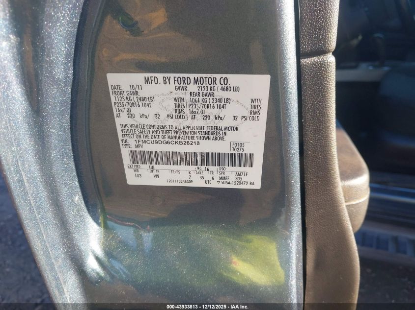 2012 FORD ESCAPE - 1FMCU9DG6CKB26218, цвет - Синий, 3.0, Бензин, Полный привод из США