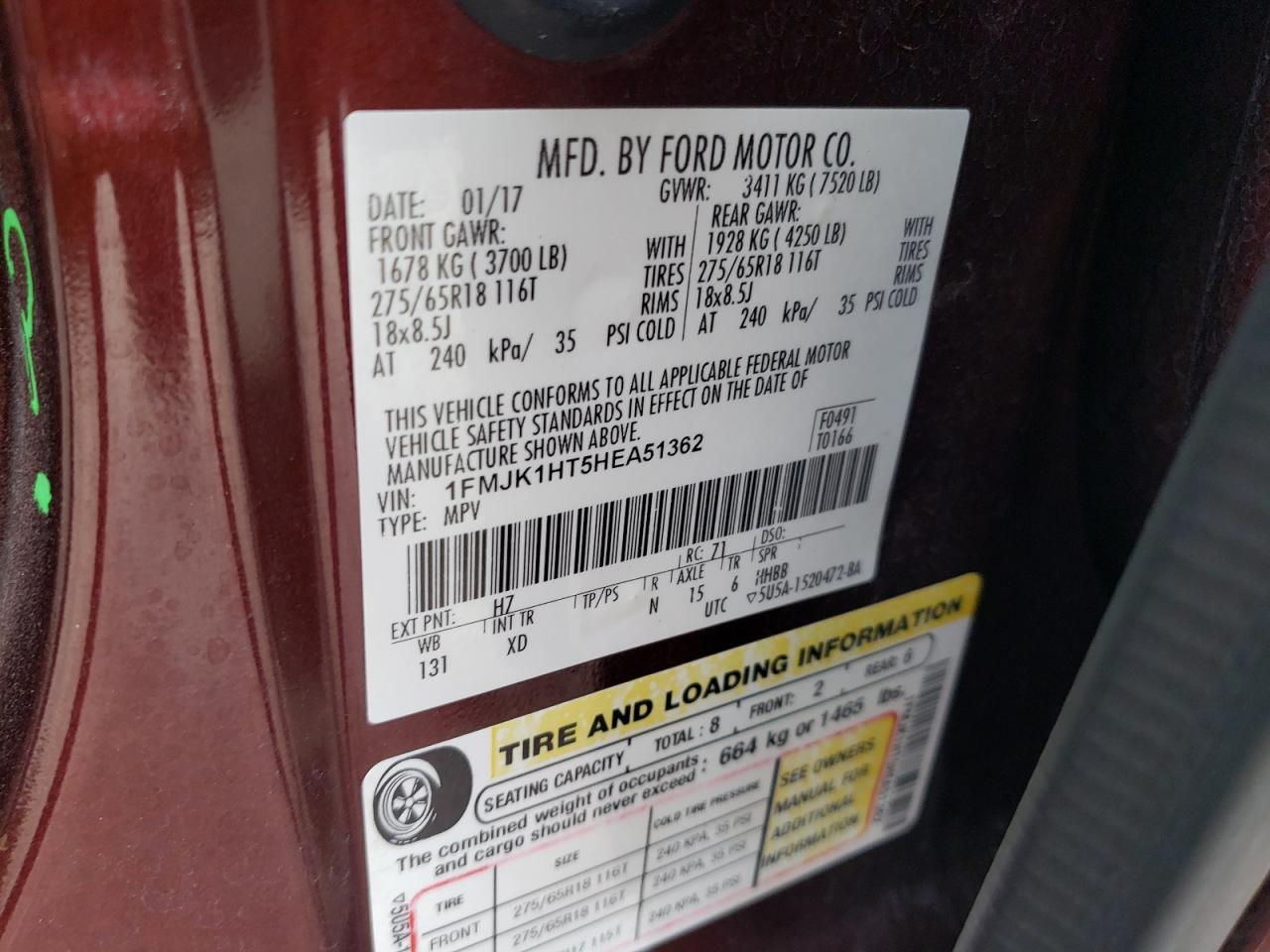 2017 FORD EXPEDITION - 1FMJK1HT5HEA51362, цвет - Бургундия, 3.5, Бензин, Задний привод из США
