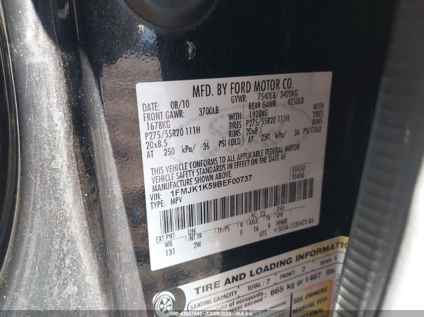 2011 FORD EXPEDITION - 1FMJK1K59BEF00737, цвет - Черный, 5.4, Бензин, из США